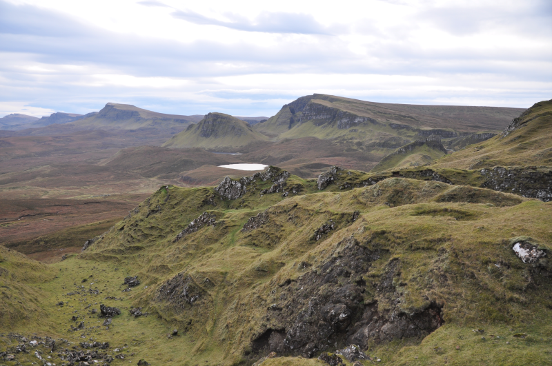 We hop in the car for a whistlestop tour of places we'd like to walk around - it looks like this will be our last day of non-awful weather. We make it up to Quiraing (joyfully pronounced "Kerrang" to the sign of the horns \m/) and get righteously blown around for an hour or so amongst some epic geology, flourescent coated sheep and some Ravens. We're pretty confident we didn't manage the walk we set out to (hard to see the map with eyes full of tears, thanks again wind) but we get back to the car and discover we don't really mind.